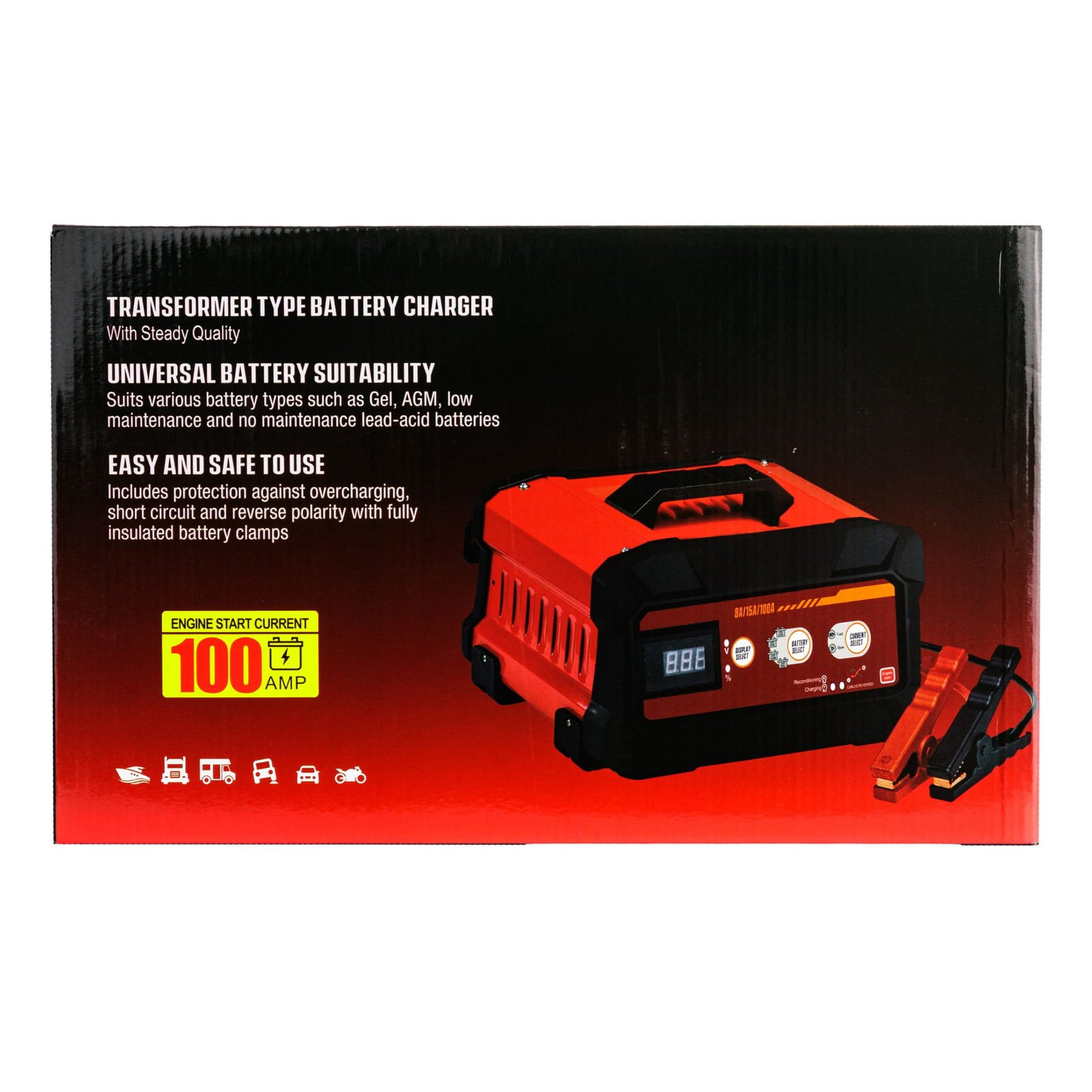 A készülék kettős funkciója révén egyetlen eszközben egyesíti a precíziós töltőt és a bivalyerős indítássegítőt így az Akkumulátortöltő és Bikázó 8A / 15A / 100A (12V/24V) használatával rengeteg időt és energiát takaríthat meg. A választható 8A és 15A töltőáram lehetővé teszi a kisebb motorkerékpárok és a nagyobb haszongépjárművek akkumulátorainak optimális sebességű töltését anélkül hogy károsodna a cellák szerkezete. Az Akkumulátortöltő és Bikázó 8A / 15A / 100A (12V/24V) 100 Amperos bikázó funkciója elegendő erőt biztosít a legtöbb benzines és dízelmotor azonnali életre keltéséhez még a legzordabb fagyok idején is. A bikázó akkumulátortöltő automata feszültségfelismerő rendszere gondoskodik róla hogy a felhasználónak ne kelljen tartania a téves beállításokból eredő károktól a 12V-os vagy 24V-os hálózatok esetén.
