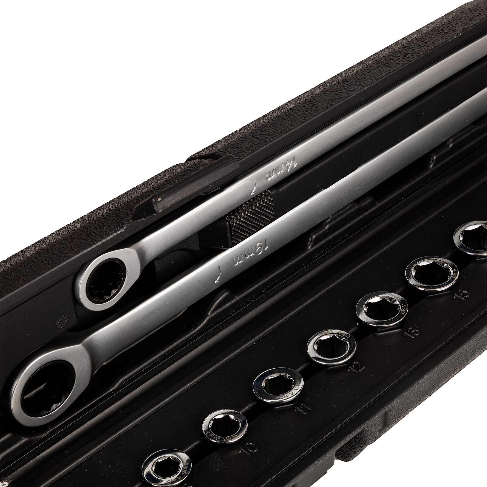 15 elem – különféle dugókulcsok, villáskulcsok és tartozékok egy helyen,