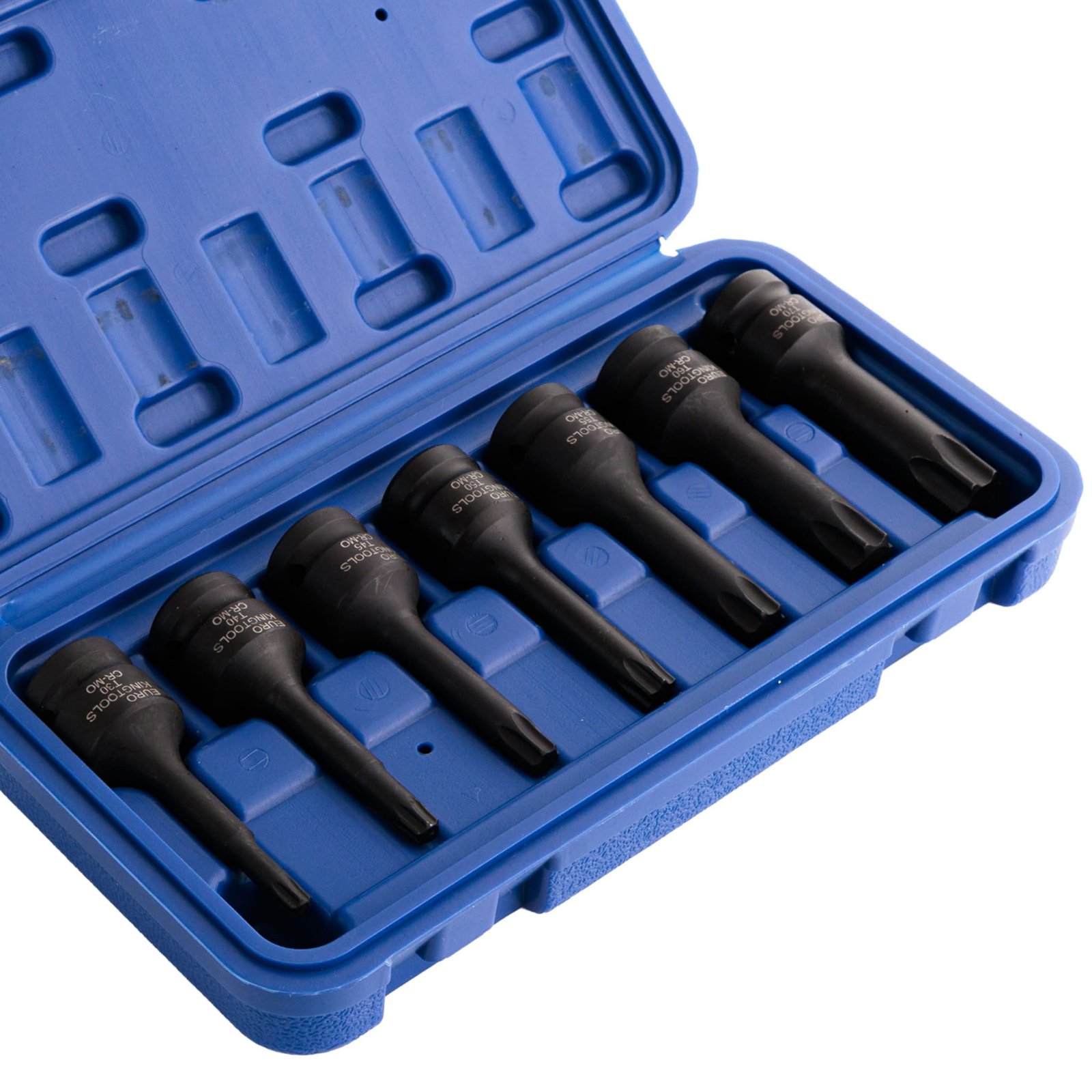 Elemek száma: 7 db,Gépi Torx dugókulcs készlet 1/2″ 7 részes