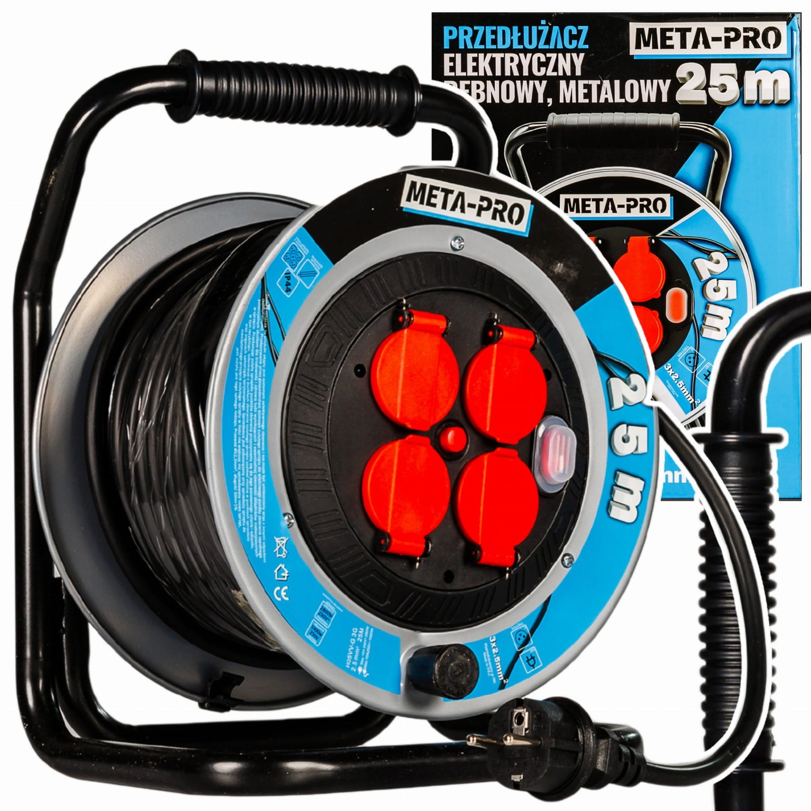 A termék 25 méter hosszú kábellel és 4 darab földelt hálózati aljzattal rendelkezik a maximális kihasználhatóságért. A strapabíró műanyag dob és a fém váz hosszú élettartamot biztosít intenzív használat mellett is. A beépített túlmelegedés elleni védelem automatikusan lekapcsolja az áramot túlterhelés esetén növelve az üzembiztonságot. A 3×1,5mm-es rézvezeték és a minőségi szigetelés garantálja az egyenletes feszültséget minden csatlakoztatott eszköznek.