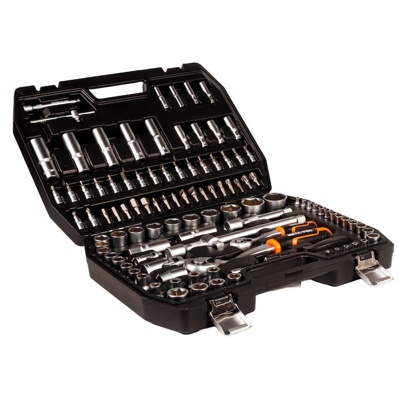Bitek 8 mm-es tartókban (17 db): – sík: SL8, SL10, SL12 – kereszt: PH3, PH4 – pozidriv: PZ3, PZ4 – torx: T40, T45, T50, T55, T60 – hatszögletű: H7, H8, H10, H12, H14
