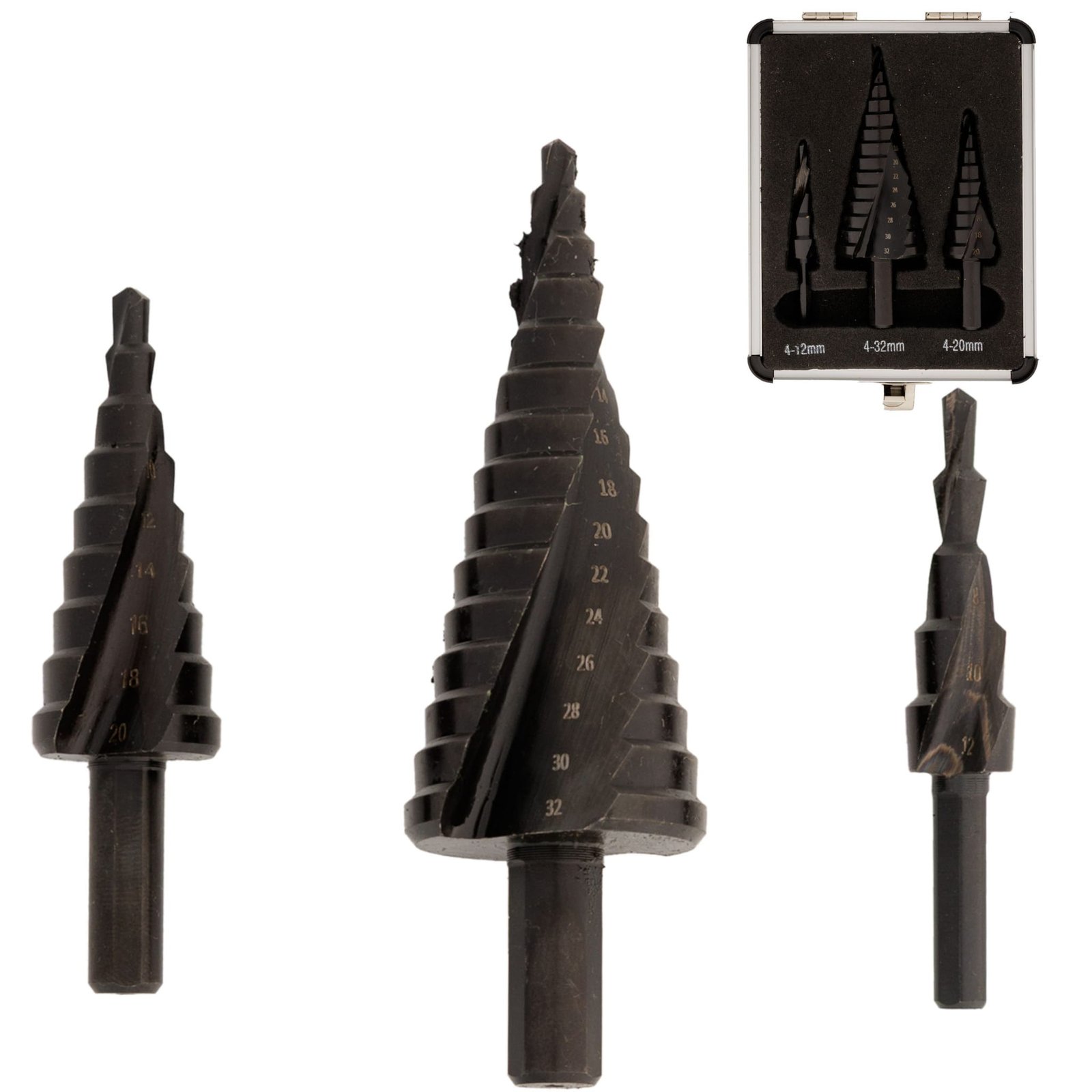Táto sada kovových špirálových stupňovitých vrtákov je spoľahlivým nástrojom pre každého profesionála aj kutilov. Obsahuje tri vrtáky v rôznych veľkostiach: 4-12 mm, 4-20 mm a 4-32 mm, vďaka čomu je všestranným riešením na vŕtanie otvorov do kovu, vrátane tenkostenných oceľových plechov, neželezných kovov a plastov. Vďaka použitiu HSS (rýchloreznej ocele) ponúkajú vrtáky vylepšenú reznú kapacitu, čo umožňuje efektívne vŕtanie v náročných podmienkach a pri vysokých rýchlostiach.