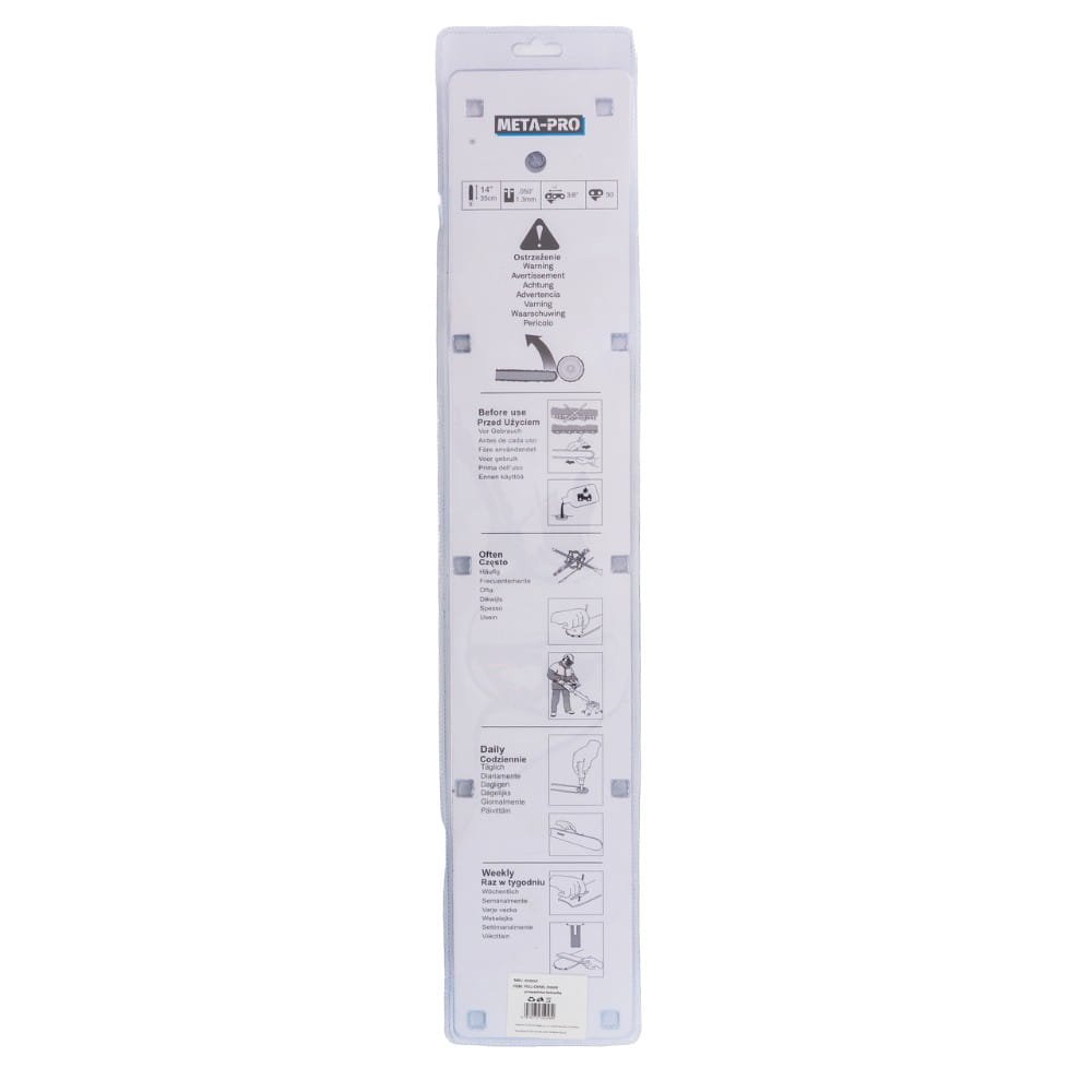 ► PRACOVNÁ DĹŽKA 35 CM (14″) ► ROZTEČ REŤAZE 3/8″ ► 50 HNACÍCH ČLÁNKOV ► 2 ODOLNÉ REŤAZE ► ODOLNÉ PROTI ODERANIU ► HLADKÉ A RÝCHLE REZANIE